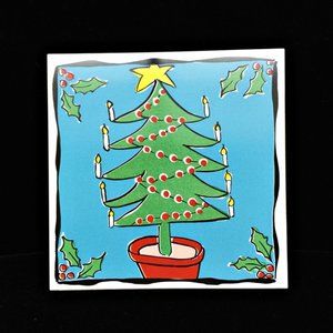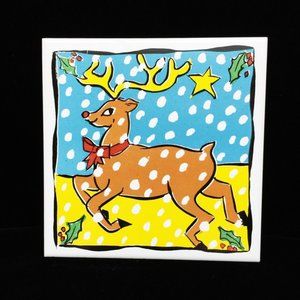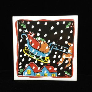4 Christmas Tiles Set Reindeer Gifts Sleigh Xmas Tree Ceramic Cork Back Portugal