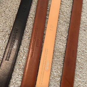 4 authentic Coach leather belts! Great condition! There are size 30β and one is 32β! See signs of wear on inside of belt not shown when worn. Cowhide and solid brass. All together was $600 plus tax - this is a steal. Price is firm.