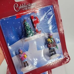 4 Cobblestone Corners Miniatures Winter Village Colorful Christmas Holliday