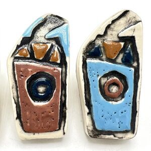 Set of 4 handmade, glazed ceramic art tile pottery knobs or pulls