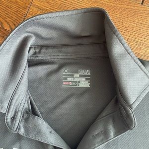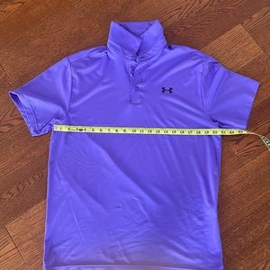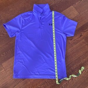 - brand/size: gray (m)/under Armour, purple (m)/ under armor, black with stripes on sleeve (m)/ under armor, black plain (s)/pga tour