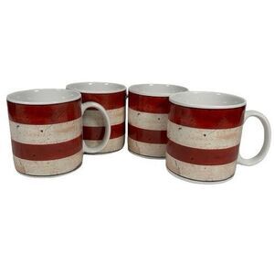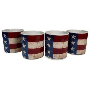4 Colonial American Flag Patriotic Coffee Cup Mugs 1997 Sakura Warren Kimble USA. Never been used. Comes from a smoke and pet free home. Please see pictures for more details.