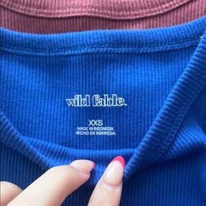 Stylish ribbed tank tops by Wild Fable. Vibrant blue and red colors. Ideal for casual outfits.