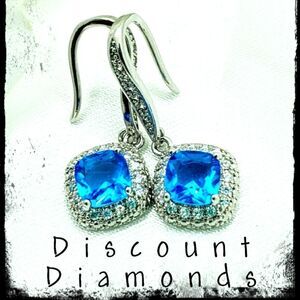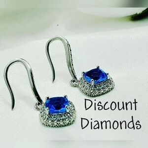 4 Ct Blue Sapphire Baguette White Diamond Earrings 14K White Gold on 925 Silver