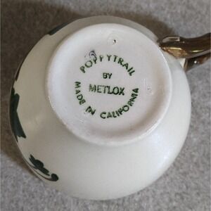 Gently used and clean. Four cups and saucers. Poppytrail by Metlox. Made in California.