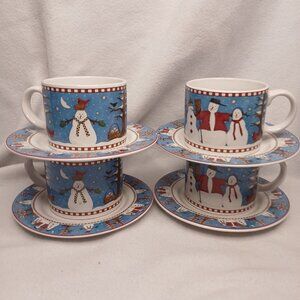 4 Cups and Saucer Sets Sakura Debbie Mumm Vintage 1997 Stoneware Christmas