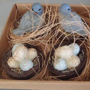 4 Decorative Garden Themed Plates with Mini Nest Candles