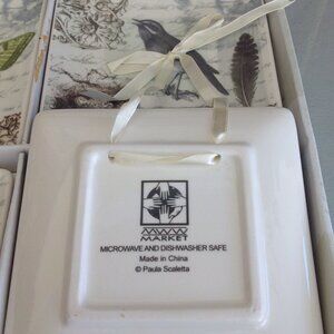 Set of 4 Garden Themed Decorative Plates 4 7/8 x 4 7/8in + a Set of Mini Nest Candles