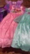 Delight your child with this enchanting set of kids' costumes featuring beloved princess and character designs. Perfect for dress-up and imaginative play, these costumes come in vibrant pink, purple, and green colors. Let your child's imagination soar with these magical outfits. three size 4t one 5t