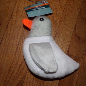 This bundle includes 3 plush squeaky dog toys and 1 large tennis ball. There is a squirrel, bird, and platypus plush squeaky toy. The tennis ball included in the bundle is yellow and orange.