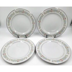Eileen 10 1/4” Dinner Plate Cotillion Floral Silver Trim Pattern 3693 Japan Set of 4