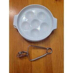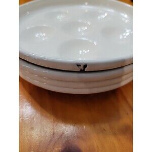 4 Escargot White Enamel Metal Plates Baking Dishes & Server Escargot/Mushroom