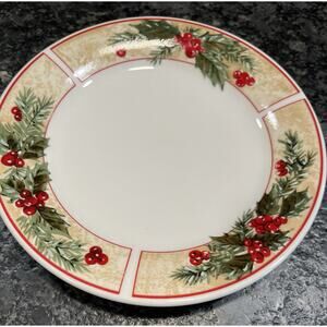 4 Everyday Gibson 7” Holly Berries Mistletoe Christmas Porcelain Salad Plates