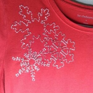 Long Sleeve Red Christmas Shirt with embellished beaded snowflakes by Liz Claiborne