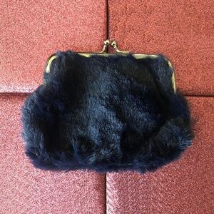 4" Faux Fur Snap Closure Soft Coin Purse - Navy