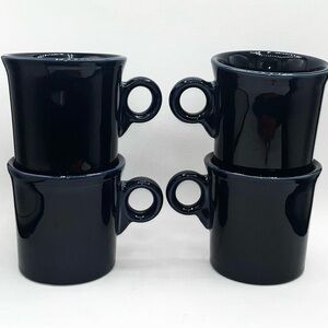 4 Fiestaware Cobalt BLUE Ring Handle Coffee Cup Mugs Tom & Jerry Fiesta VTG EUC