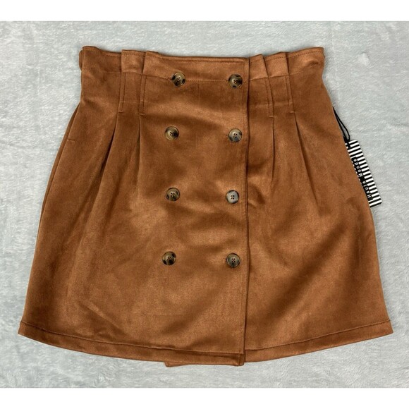 Haute Monde Womens Size Large Faux Suede Button Front Mini Skirt