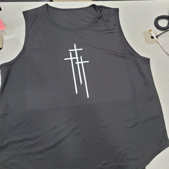 (4 For $20) Men's Three Cross Muscle Tank, size Large Black Shirt, white crosses