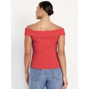 Old Navy Womens Size XXL Off-the-Shoulder Ribbed Top In Cherry Tomato