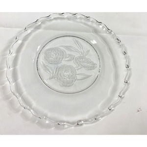 Four Fostoria Camellia Salad Dessert Plates 7.5" Clear Etched Glass Roses Vintage...good vintage condition...no chips or cracks...some scratches from use and age...approximate measurements in photos