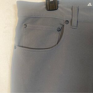 4 Fourlaps Gray Pants Style 1072 Size 32. Great pre-owned condition. Polyester/spandex blend. Front snap and zipper closure. 4 front pockets and 2 back pockets. Ultra high stretch. Measures approximately waist 34", inseam 32", rise 11".