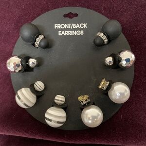 4 Front & Back Stud Earring Set – Silver, Pearl, Black Matte & Striped Design