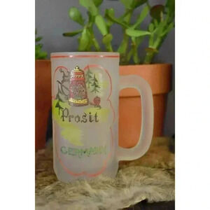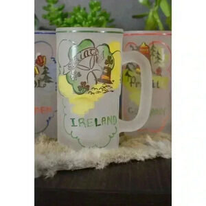 4 Frosted Beer Mugs Prosit Skol Ireland glass stein vintage barware European