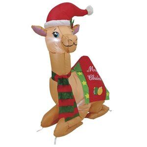 Looking for a delightful and fun addition to your holiday décor? Spread Christmas joy to neighbors, guests, and passersby with this fun Christmas camel inflatable holiday decoration. The lighted design makes it perfect for your nighttime display. This festive decoration works great as a standalone or combined with other inflatables to create a custom scene. The lightweight materials and self-inflating design make it easy for anyone in the family to set up and take down. Just plug it in and watch the magic unfold! Once deflated, its compact design makes storage easy.