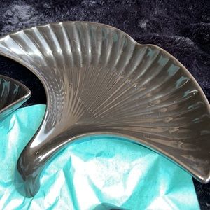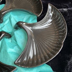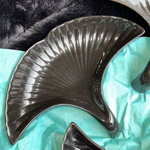 4 Ginkgo Leaf Shaped Catchall Trays Black High Gloss Dessert Plates Decor
