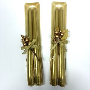4 Gold Glitter Taper Candles 10" Tall Sparkle Shimmer Holiday Table RL NEW