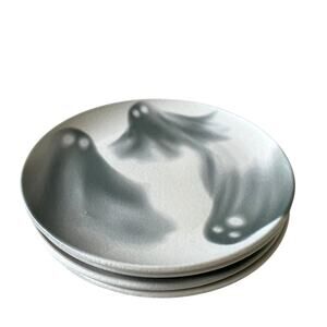 (4) Grammercy Studio Halloween Ghost Salad Plates 8in Matte White Black BOO New