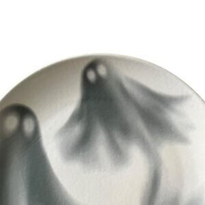 (4) Grammercy Studio Halloween Ghost Salad Plates 8in Matte White Black BOO