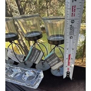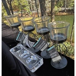 4 Greenbrier Int. Black Metal & Heavy Clear Glass Candle Holders Brand New -A29