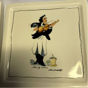 4 Guy Buffet Musical Waiters Coasters, 4 x 4 in., Ceramic/Rubber Back, Signed