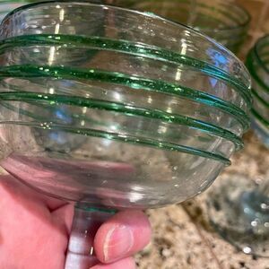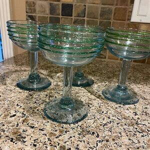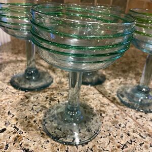 4 Hand Blown Green Glass Margarita Glasses Made in Mexico