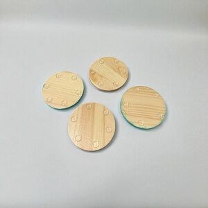 4 Handmade Wooden Blue Patterned Drink Coasters
