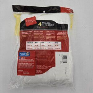 The product is a set of four Hanes Men's ComfortSoft 100% Cotton Lay Flat Collar Blank T-Shirts in size small. These white t-shirts feature a solid pattern, short sleeves, crew neck, and regular fit. Made of ComfortSoft cotton and other materials, these heavyweight t-shirts are machine washable and perfect for all seasons. With expedited shipping available, these basic tee shirts from the Hanes Comfortsoft product line offer a high-quality and stylish option for men's clothing.