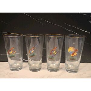 Set of 4 Vintage 6" Highball Drinking Glasses, with Gold Rimmed Detail, Bar Glasses, 3D Enameled Game Birds/ Pheasant, Excellent Used Vintage Condition, No Chips or Cracks, Please refer to the photos for the condition, Hand Wash Only, Weight before packaging 3.2 lbs.