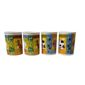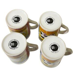 Preowned - no chips/cracks - shows normal usage - graphic colors are vibrant - one cup has a black spot under firing in the bottom