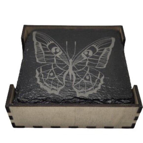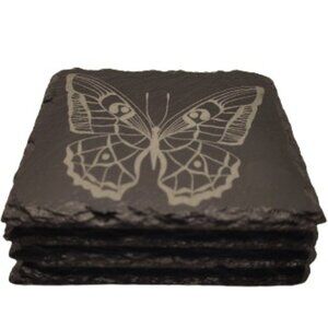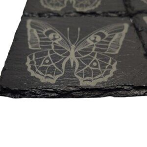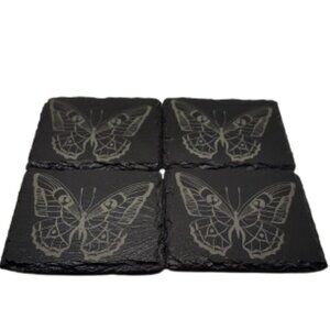 4 Inch Black Coasters Stone Coaster Set, Laser Engraving "Butterfly" Set of 4