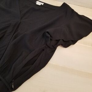 Fit: this style fits true to size. - Surplice neck - Flutter sleeves - Wrap styling - Hidden side zip closure.