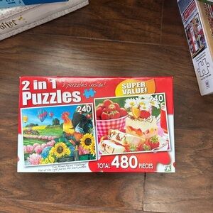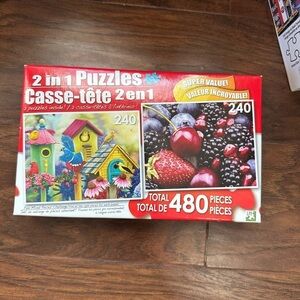 2 in 1 jigsaw puzzles, each puzzle is 240 pieces in giving you 4 puzzles total. Jigsaw puzzles by Puzzlebug.