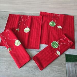 4 LENOX Christmas Holiday 15" Square Merry Bright Ho Ho Ho Fa La La Placemat Set