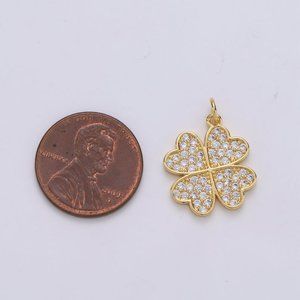 4 Leaf Clover & Cubic Zirconia Gold Filled Charm