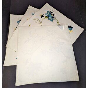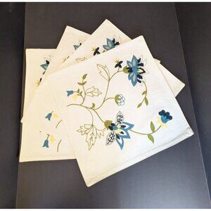 4 Linen Square Placemats Embroidered Blue Green Floral Ridgefield Home 16"