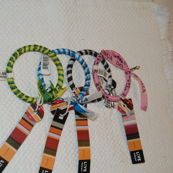 4 Live Worldly Multi Color Bangle Bracelets W/ Small Charm Made in Brazil NWT
