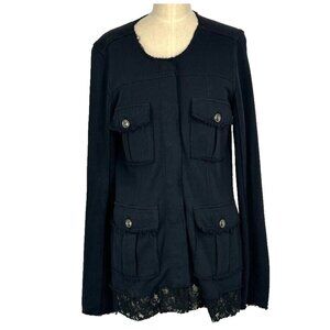 4 Love And Liberty Johnny Was Womens Size S Jacket Cargo Pockets Black Lace Trim