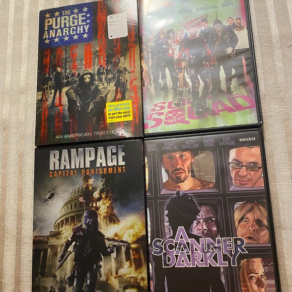 4 MOVIES THE PURGE ANARCHY, SUICIDE SQUAD, RAMPAGE CAPITAL PUNISHMENT, A SCANNER