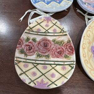 These plates are perfect for displaying as a decorative accessory, or for use during the Easter season. They are stackable and have a unique oval shape, making them a great addition to any room. Whether you're looking to add some spring flair to your home or searching for the perfect Easter gift, these plates are sure to please.