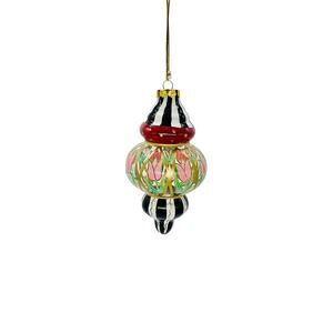 All 4 ornaments in perfect condition. Each holds a slightly different design from the other, including features inspired by Mackenzie-Childs’ discontinued design patterns such as “Courtly Check”, “Vintage Circus Rose Arbor”.